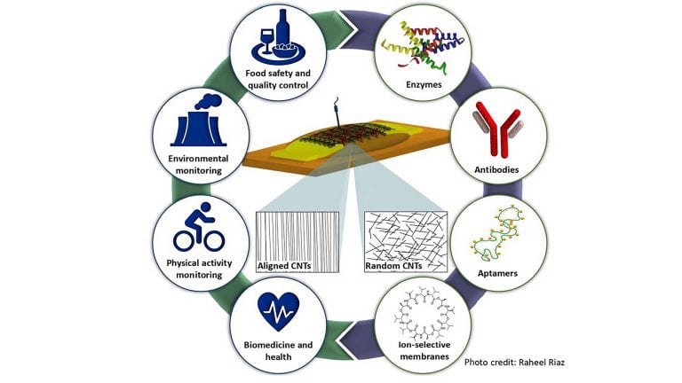 “Biosensors using (field-effect transistors) as biotransduction elements are one of the most promising devices for biosensing applications, because they have already demonstrated high sensitivities toward several analytes down to picomolar concentration,” said Mattia Petrelli, from Free University of Bozen-Bolzano. “Among all the possible materials that can be used for FET-based biosensors, semiconducting carbon nanotubes are interesting, because they have favorable electrical and chemical properties.”