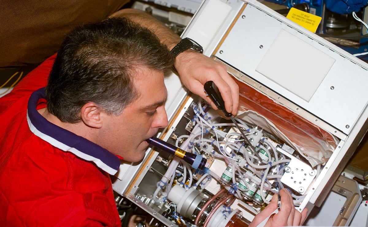 They found that if they placed the kidney cells and culture medium in a gently rolling horizontal cylinder, the cells stayed suspended, as if weightless, in the center of chamber. Better yet, they discovered that the multiplying cells organized themselves in much the same way they would in the body, building an orderly, three-dimensional tissue structure rather than the smooshed layers that cell cultures form in Petri dishes in Earth’s gravity. As a result, the cells were healthier and grew faster, and they also secreted molecules similar to what they would produce in the body — and at high volumes and purity. This was key for many applications. For example, the Johnson team was originally growing kidney cells for their ability to produce erythropoietin, a hormone that regulates red blood cell production and can treat anemia.