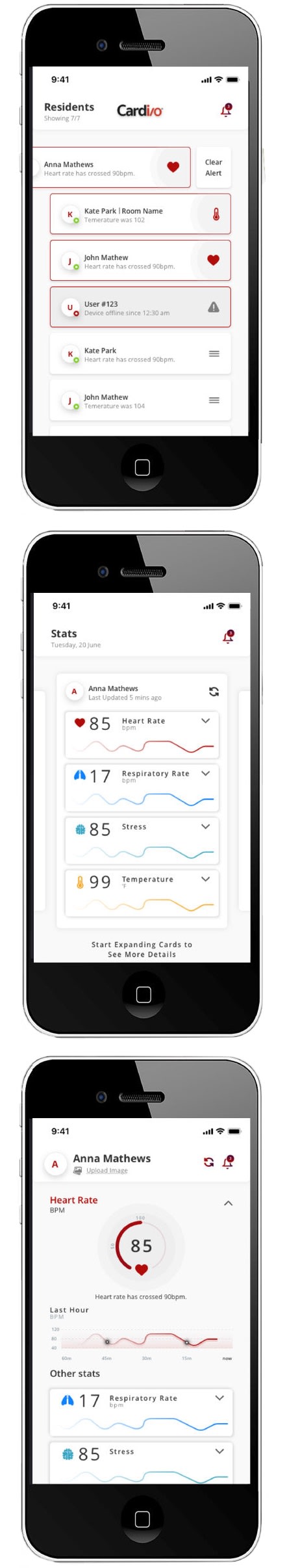 This is particularly important for high-risk conditions such as infectious diseases. Medical professionals doing in-person monitoring could also be at risk, as they were during the COVID-19 pandemic. Cardi/o is not a medical device and isn’t intended to diagnose conditions but rather collects wellness data individuals and caregivers can use.
