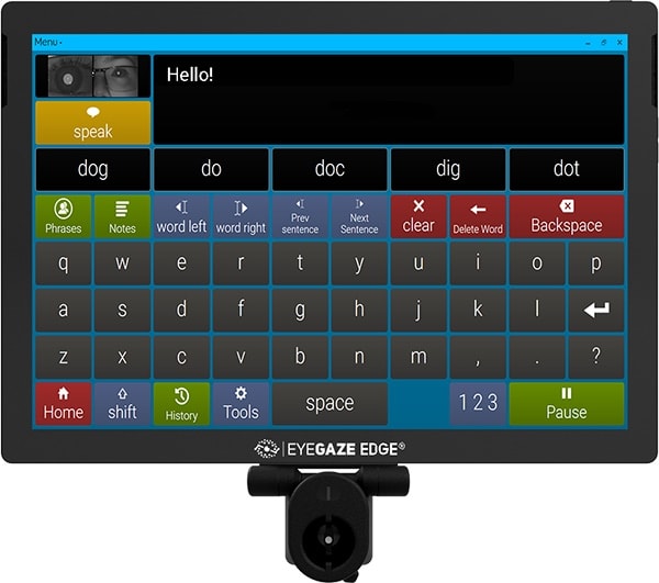 The company’s Eyeworld software integrates with computers, mobile phones, and tablets, allowing the Eyegaze camera to function as an external mouse and keyboard. By enabling almost any computer function, it lets users chat online, post to social media, send email, text, or make phone calls. It’s also possible to change room lighting, adjust thermostat settings, and operate other environmental controls using Amazon Echo and Google Home via pages of specialized buttons with one-glance button controls.