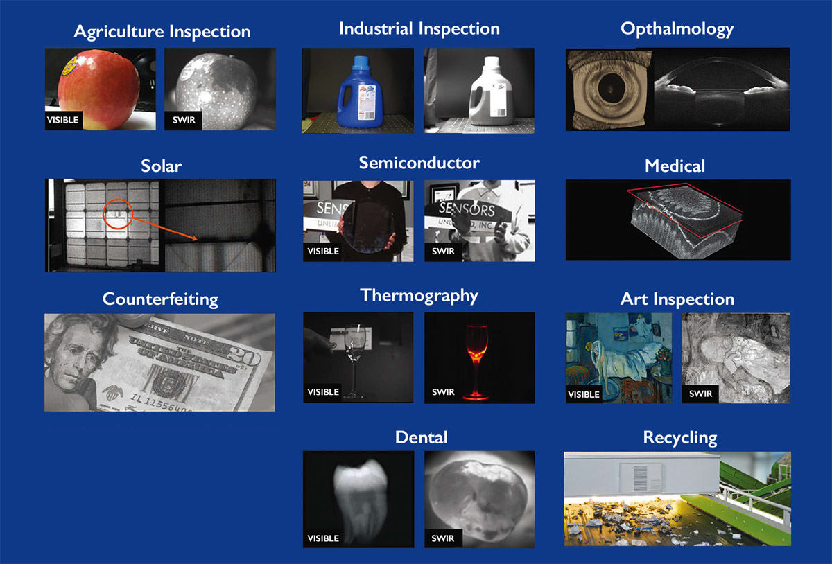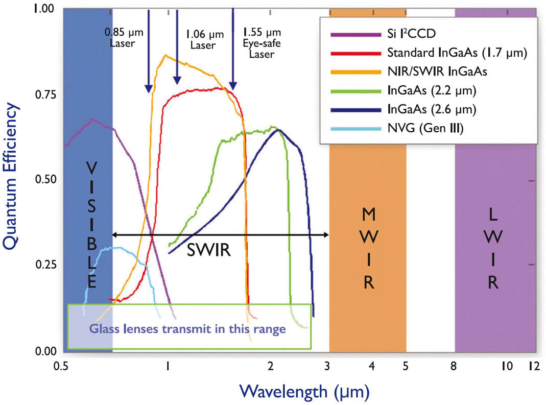 Sensing in the shortwave infrared range (wavelengths from 0.9 to 1.7 microns) has been made practical by the development of Indium Gallium Arsenide (InGaAs) sensors. Sensors Unlimited, Inc., a part of Collins Aerospace, specializes in manufacturing InGaAs one-dimensional linear arrays, two-dimensional focalplane array cameras, and SWIR systems. But why even use SWIR?