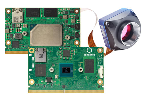 congatec (San Diego, CA) and MATRIX VISION recently showcased their new SMARC Computer-on-Module platform with PCI Express (PCIe)-based camera module extension. With no overhead and no need for additional interfaces such as GbE, USB or MIPI CSI, image data are written directly into the RAM of the SMARC module with virtually no latency and higher bandwidth. MATRIX VISION’s Sony Pregius sensor-based camera modules deliver image data to congatec’s Intel Atom processor based SMARC module at speeds of up to 226.5 frames per second (FPS) and with 1.6 megapixel resolution. Such high-speed transmission enables hard real-time at clock rates of approximately 4 milliseconds. This clocking is also a good fit for actuator commands over TSN (Time Sensitive Networking) based Ethernet, which provides hard real-time at clock rates <1 millisecond.