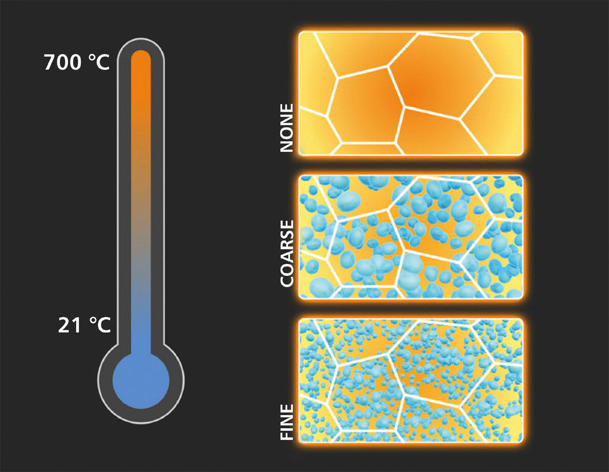 Researchers have found a way to simultaneously increase the strength and ductility of an alloy by introducing tiny precipitates into its matrix and tuning their size and spacing. The precipitates are solids that separate from the metal mixture as the alloy cools.
