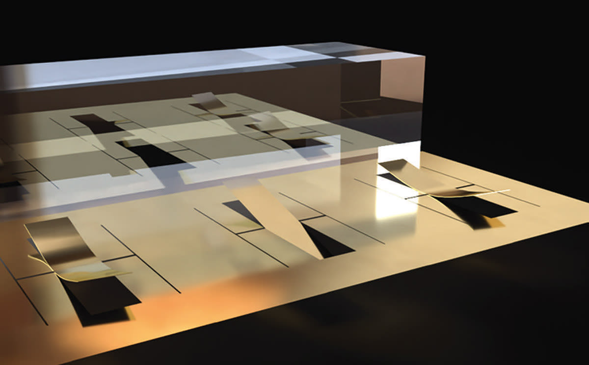 If force is applied to a uniform structural film, nothing happens other than stretching it a bit, like what happens when a piece of paper is stretched. But when cuts are introduced to the film and forces are applied in a certain direction, a structure pops up — similar to when a kirigami artist applies force to a cut paper. The geometry of the planar pattern of cuts determines the shape of the 3D architecture.