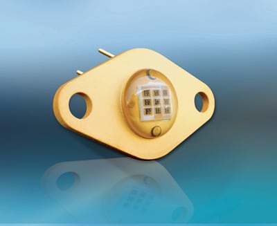 Opto Diode Corporation (Camarillo, CA), an ITW company, introduced an infrared light-emitting diode (IRLED) in a convenient TO-66 package for heatsink attachment, the OD-669. The high-power gallium aluminum arsenide (GaAlAs) IRLED illuminator features a peak emission of 880 nm with an extremely wide angle of emission. Total power output ranges from 390 mW (minimum) to 500 mW (typical) under test conditions at 300 mA. The spectral bandwidth at 50% is 80 nm, and the half intensity beam angle is typically 120 degrees. The forward voltage of the OD-669 ranges from 13.5 volts (typical) to 15 volts (maximum); reverse breakdown voltage is at minimum 5 volts and 30 volts (typical). Capacitance is 11 pF; the rise time and fall time is typically 3 µsec.