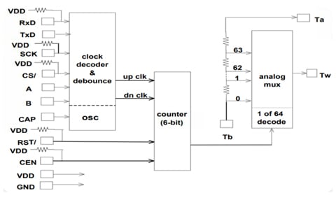 Omni Pro Electronics, Addison, TX, has announced LSI/CSI’s release of six new additions to its extensive line of Standard ICs. Designated LS7190 – 194, the new devices are versions of a three-terminal digital potentiometer to replace mechanical potentiometers. Clocks drive an internal 6-bit up/down counter with a count ranging between 0 and 63 to correspond to 64 wiper-tap positions of a resistor chain consisting of 64 equal resistors.