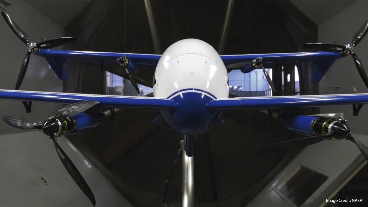 Increased equipment requirements for eVTOLs also increase system mass, negatively impacting performance. Innovators at NASA’s Langley Research Center recognized this issue and have developed a novel eVTOL solution design. The technology is a distributed electric propulsion, modular wing aircraft capable of vertical takeoff and landing, without requiring near 90° wing tilt. Instead, NASA’s eVTOL uses large flaps and a fixed slight wing tilt to generate upward force, enabling VTOL operations, benign transition from hovering to forward flight, and increased safety and simplicity of operations.