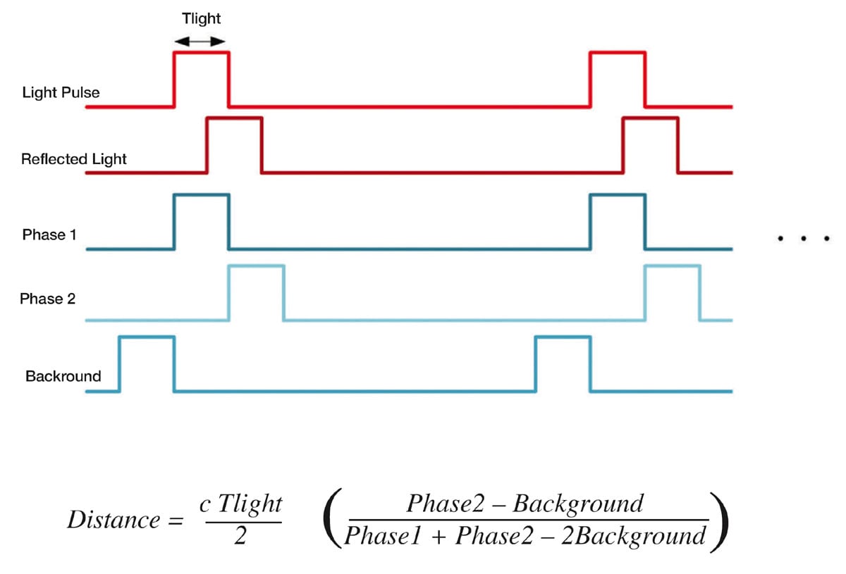 There are multiple technologies based on the time-of-flight concept. Generally, all of them are synchronized with a light source and estimate the distance by calculating the time taken for the light to travel from the camera to the object and then back again.