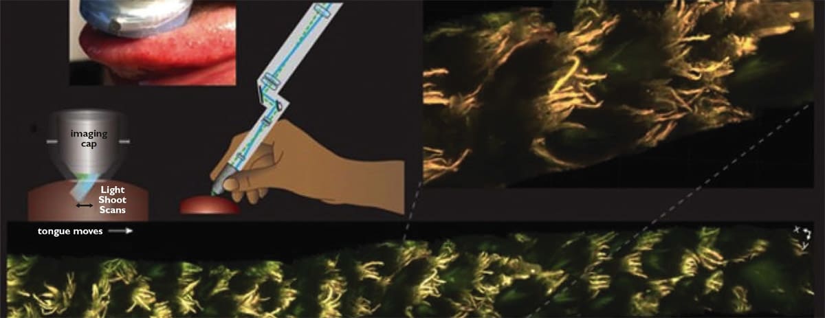 So, the team worked to develop a smaller version of the system with a better form factor, and a sterile imaging cap. PhD candidate Malte Casper helped with the team’s first demonstration of MediSCAPE in a living human, collecting images of a range of tissues in and around the mouth. These results included rapidly imaging while a volunteer literally licked the end of the imaging probe, producing detailed 3D views of the papillae of the tongue.