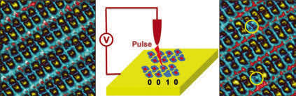 A single-molecule switch that can act like a transistor and store binary information such as the 1s and 0s used in classical computing. The molecule is around five square nanometers in size and could offer information densities of around 250 terabits per square inch, which is around 100 times the storage density of current hard drives. A key application is computer storage devices.