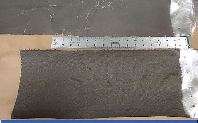 High atomic number materials, such as tantalum, do not bond well to oxygen-and hydroxyl-rich surfaces, such as glass fibers. These metals often form surface oxides when layered on glass fabric, resulting in flaking of the high atomic number material off the fabric during cutting, folding, and/or handling.