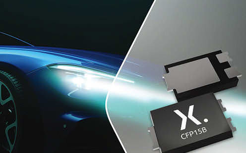 Nexperia (Nijmegen, The Netherlands) has announced the latest additions to its rapidly expanding portfolio of Clip-bonded FlatPower (CFP) packaged diodes. The latest additions include 32 planar Schottky diodes and eight hyperfast recovery rectifiers housed in the CFP15B package. They are available as standard and Q-types that meet AEC-Q101 automotive qualification standards. The operating range for these new planar Schottky diodes is between 30-100 V and 3-15 A. Versions optimized for low forward voltage (VF) (including the PMEG100V080ELPE/-Q) deliver low conduction losses and high efficiency for cost-efficient DC-DC converters and in reverse polarity protection applications. These diodes are also available in low leakage variants with ultra-low reverse current and best-in-class operating temperature capability, providing exceptional robustness against thermal runaway. The eight 200 V single-type recovery rectifier devices (PNE200xxEPE/-Q series) have an average forward current (IF) between 4-10 A and complement existing dual type recovery rectifiers also available. Using the smaller, high-power density CFP15B instead of DPAK or SMB/C packages can save up to 60 percent of board space, while maintaining the same level of electrical performance.