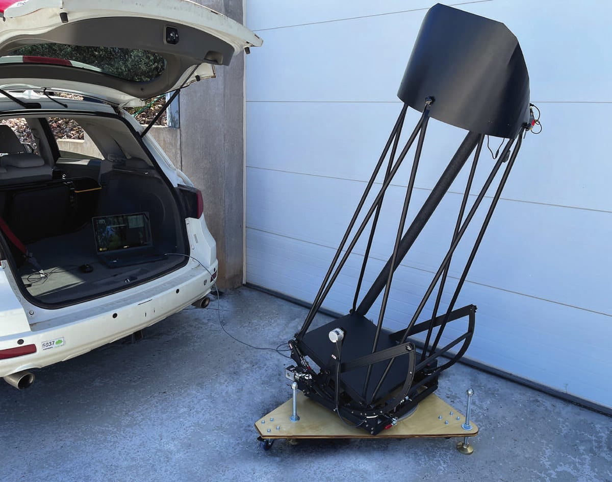 The development of Winer’s new telescope took over a year in the making and was designed to be uniquely transportable. With a 16-inch diameter mirror set within a relatively small structure on wheels, it is an unusual tool for astronomers as it is an extremely high accuracy telescope that can be moved by car.