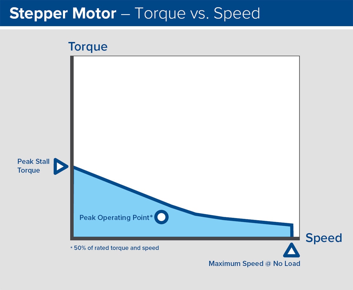 The speed, torque, and voltage relationship is similar for stepper motors ( Figure 2) although you should be more conservative in designating operating points. As a general rule of thumb, the operating range of a stepper should be about half of the max of the speed and torque to ensure that you don’t jeopardize accuracy by missing steps. This is much different than with servos, which you can push more closely to the limits of their operating range. This is because servos rely on closed feedback loops that monitor the motor position against its target position and make constant course corrections.