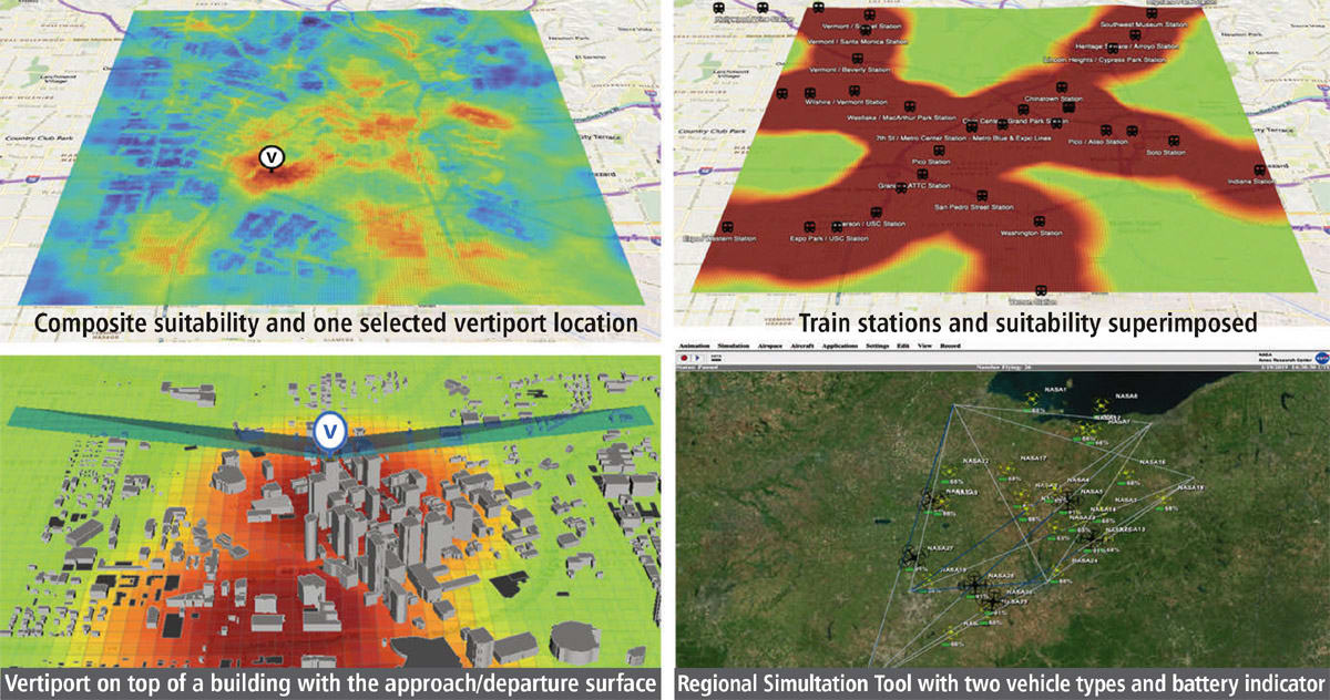 VAMOS! includes a modeling component and a simulation component. The modeling component assists a user to identify one or more geographical locations at which a vertiport may be physically built. The simulation component of the technology displays, in real-time, the simulated operational behavior of AAM vehicles and in the context of their projected flight paths combined with data dynamically obtained from live sources. These data sources can be from the Federal Aviation Administration (FAA) or other private or public governing bodies, from one or more AAM vehicles in flight, and from weather sources.