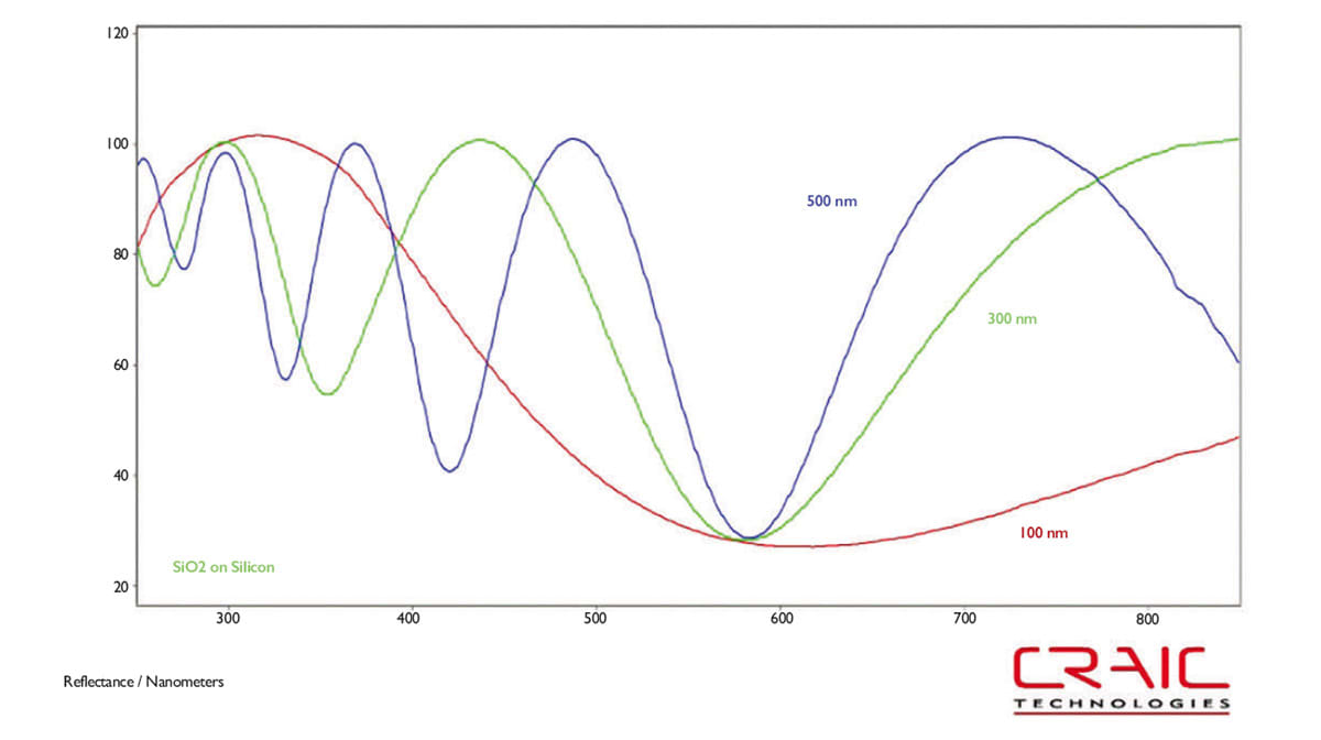 In semiconductors, they are used to measure the thickness of thin films (see Figure 5). The biologist uses microscope spectrometers to study vision and the forensic scientist uses them to characterize trace evidence such as textile fibers and paint chips.