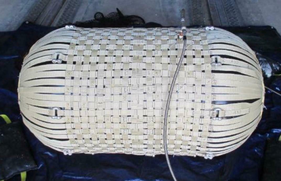 Luna Innovations tested the fiber optic sensors woven into the flexible structural restraint layer webbings on an inflatable test article with a diameter of 0.61 meters (2 feet) fabricated from Vectran, a manufactured filament fiber with a liquid-crystal polymer chemistry. Experiments successfully demonstrated creep sensing, pressure sensing, and detection of damage location and magnitude.