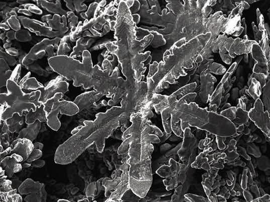 Scientists in New Zealand and Australia working at the level of atoms have created something unexpected: tiny metallic snowflakes. That’s significant because coaxing individual atoms to cooperate in desired ways is leading to a revolution in engineering and technology via nanomaterials. To create metallic nanocrystals, the researchers have been experimenting with gallium, a soft, silvery metal which is used in semiconductors and, unusually, liquifies at just above room temperature. Metals were dissolved in gallium at high temperatures. Once cooled, the metallic crystals emerged while the gallium remained liquid. Such nanoscale structures can aid electronic manufacturing, make materials stronger yet lighter, or aid environmental clean-ups by binding to toxins.