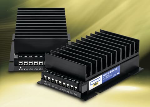 AutomationDirect has added new RHINO Pro DC-to-DC converters designed for harsh industrial environments and providing high EMC immunity, shock/vibration resistance, and thermal shock resistance. This line offers models with 150W outputs at 12, 15, 24, or 48 VDC, and input voltage ranges of 9.5-36 VDC or 18-75 VDC. They deliver constant current output at 100 percent load, making them ideal for battery charging applications.