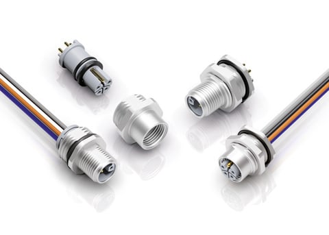 Recent additions to binder USA’s, Camarillo, CA, M12 portfolio offer new combinations of features — pin count, termination style, locking system, housing materials, and shielding. The company is also developing new M12-threaded products with outer push-pull locking. There is also a single-cable hybrid solution, which combines seven signal contacts with two power contacts to allow power and signal supply in a single connector.