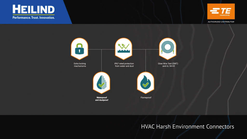 HVAC systems are exposed to harsh environments ranging from extreme heat to frigid temperatures — both inside and outside the system. Protect your HVAC system against dust, debris, extreme weather, thermal shock, high vibration, condensation, humidity, and corrosion. TEs top-of-the-line sealed connector solutions offering IP-rated protection in the harshest environments.