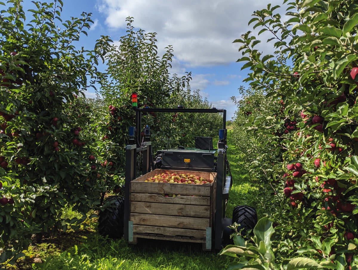 “AurOrA” (Autonomous Orchard Assistant Altes Land) is a small autonomous vehicle, which in future will move independently around fruit orchards and detect full fruit boxes, pick them up and take them to a defined unloading point. The robot eases the burden on harvest workers and allows them to concentrate on more challenging tasks.