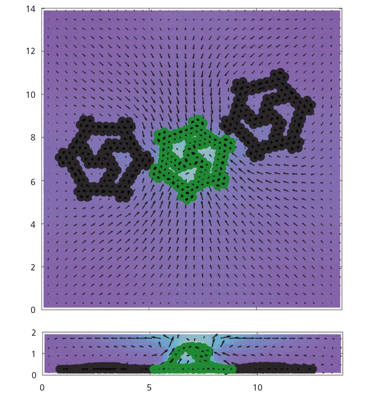 The team found that not all the gear parts needed to be chemically active for motion to occur; in fact, asymmetry is crucial to create movement. By determining the design rules for the placement, the researchers could direct the rotation to be clockwise or counterclockwise. This added “program” enabled the control of independent rotors to move sequentially or in a cascade effect, with active and passive gear systems. This more complex action is controlled by the internal structure of the spokes and the placement within the fluid domain.