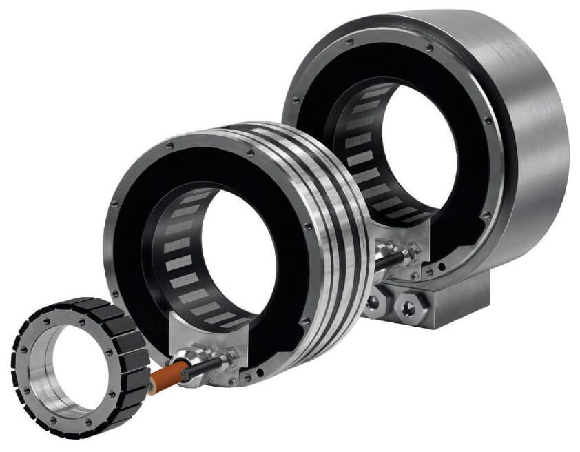 A torque motor can be viewed as a traditional servo drive featuring numerous poles that resembles a linear motor in a rotary configuration or. The substantial number of poles in conventional torque motors allows them to achieve high torque levels at moderate speeds, even without any motion. Additionally, their compact design is an appealing attribute, encompassing a slender lamination stack and a sizable hollow shaft or bore.