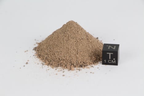 Since MGS-1 simulates the average composition of Martian regolith and geology is known to vary laterally and vertically as driven by site-specific alteration processes (e.g., wind, water, impacts), MGS-1 is used as the base of the other three Exolith Lab Martian regolith simulants: MGS-1C (Figure 2), MGS-1S (Figure 3), and JEZ-1 (Figure 4). MGS-1C is a modified version of MGS-1 with a significant enrichment in clay, which is reflective of a clay-rich Martian regolith like that found in the Noachian terrane near the Hellas impact basin.