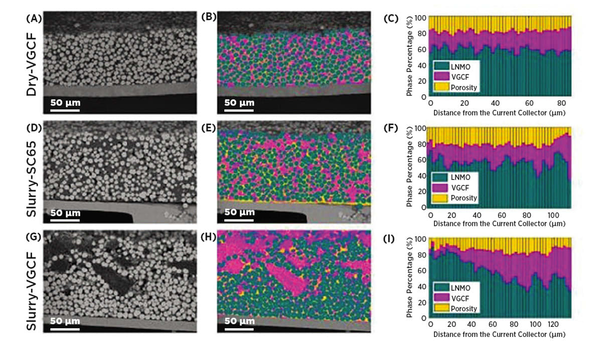 Thick electrodes are being explored as a practical solution that can effectively improve energy density, but the increased thickness also results in mass transport limitation and increased electron impedance. Current optimization and production of these electrodes are hampered by a lack of high-resolution means to survey the electrode structure in detail, including statistically relevant 3D electrode volumes that would provide an in-depth understanding of how microstructure correlates to cell performance. 1