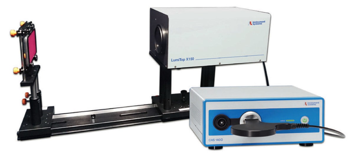 Instrument Systems has optimized its LumiTop family of display test systems for quality control in production. It consists of a 2D imaging colorimeter, a spectroradiometer of the CAS series and a photodiode. This combination allows all relevant optical tests to be performed in just one test station. The most important test parameters include the measurement of display homogeneity (luminance and color), the determination of defects (mura), gamma exponents, flicker and luminance modulations. The 3-in-1 concept enables simultaneous measurement with all three sensors and guarantees both very short measurement times due to the 2D images and high, absolute accuracy via the spectroradiometer. The measurement solution can be used independently of the DUT’s display technology and is also suitable for new display technologies such as OLED or μ-LED displays.