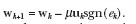 The error value is also used to update the filter weights in either of two ways, depending on which algorithm is in use. In the LMS algorithm, the update equation is