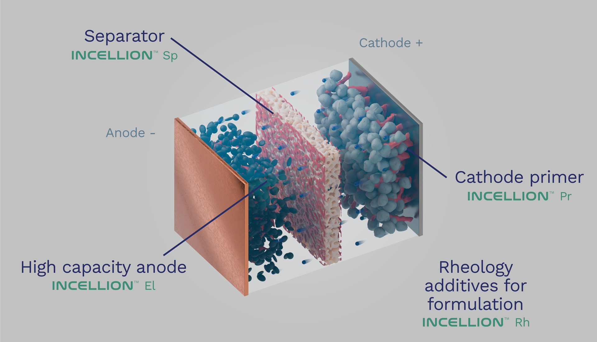 - Rheology Additives: INCELLION ™ Rh rheology additives are used to improve the flow properties of the active material slurry for optimal coating on the electrodes and the separator.