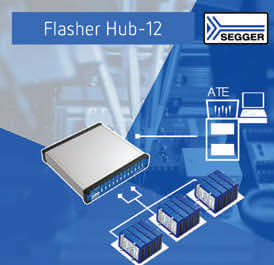 The Flasher Hub-12 from Segger, Monheim-am-Rhein, Germany, controls up to 12 Flasher Compact devices so that they program simultaneously. Each channel can be configured to program a different device or a different firmware image. They are directly connected, without the need for external USB Hubs, to create a single, powerful gang programmer for efficient parallel programming at maximum speed. Up to 4 Flasher Hubs can be chained so that 48 Flasher Compacts are connected and controlled via the same admin interfaces.
