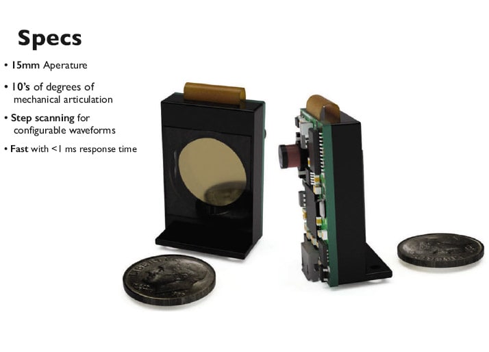 Aguilar: We’ve moved away from the designs of the past such as the expensive voice coils, bulky scala mirrors and the wobbly spinning polygon and into a new generation MEMS mirror that is the right size for the automotive market. Our step-scanning MEMS mirror is about the size of a dime ranging from 10 to 15 mm, large enough to move the tens of degrees needed for a wide field of view in LiDARs for autonomous vehicles. We’ve also developed a powerful motor that will not shake or wobble, and there is a sophisticated encoder that allows accurate measurement of where the mirror is pointing when it shoots the laser. There’s no spinning, because it is a step scanner, which dramatically improves performance and reliability.