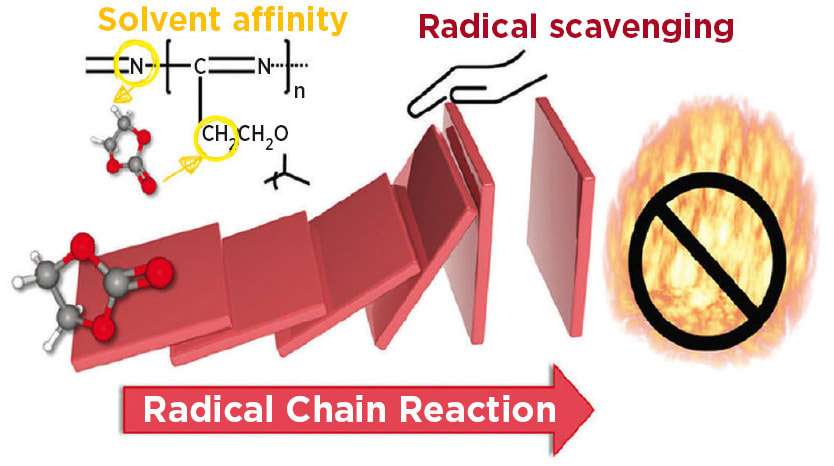 Jihong Jeong (School of Energy and Chemical Engineering, UNIST) said, “The interaction between the polymerized material inside the battery and volatile solvents allows us to effectively suppress radical chain reactions. Through electrochemical quantification, this breakthrough will greatly contribute to understanding the mechanism of non-flammable electrolytes.”