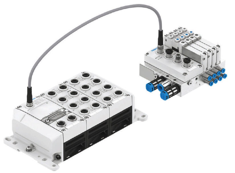 Many machine builders employ remote I/O modules to reduce wiring for the digital and analog devices, as well as increase reliability, provide greater flexibility in system design, and make machines more resistant to harsh environments. Remote valve terminals are used to shorten pneumatic tubing and reduce the number of bends, both of which increase the performance of pneumatic actuators by shortening cycle times and reducing the likelihood of leaks.