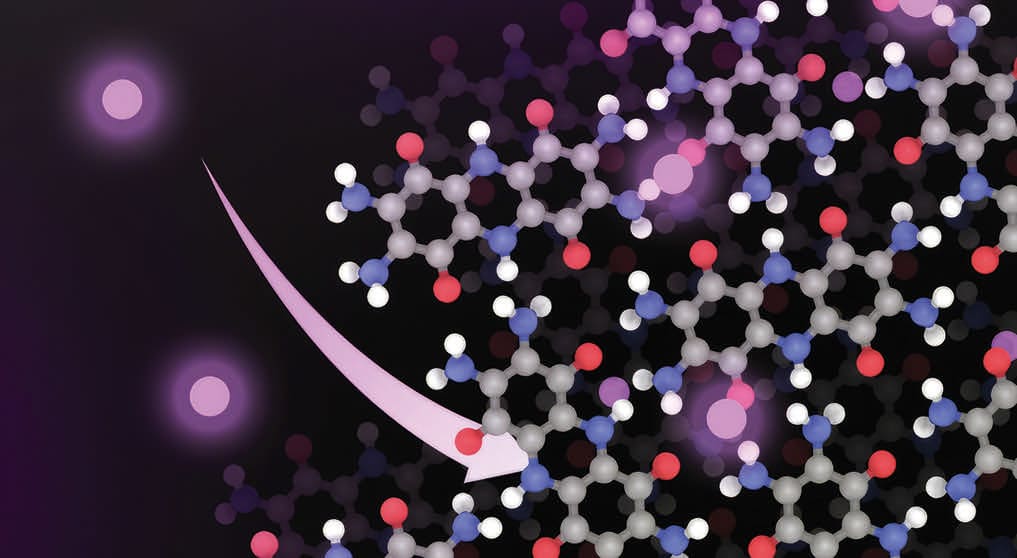 Those hydrogen bonds make the material highly stable and also very insoluble. That insolubility is important because it prevents the material from dissolving into the battery electrolyte, as some organic battery materials do, thereby extending its lifetime.