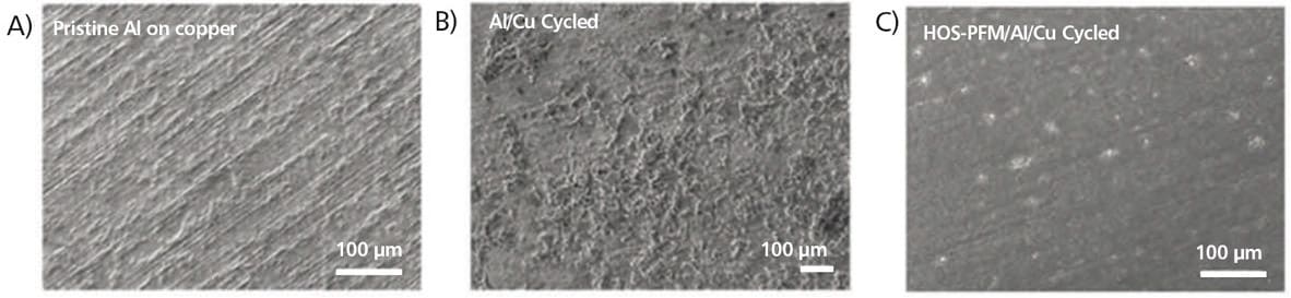 To demonstrate HOS-PFM’s superior conductive and adhesive properties, Liu and his team coated aluminum and silicon electrodes with HOS-PFM, and tested their performance in a Li-ion battery setup.