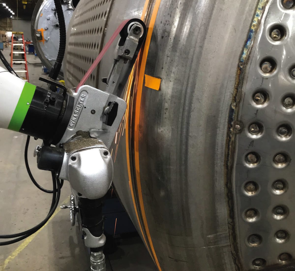Paul Mueller Co. specializes in fabricating large tanks essential for diverse industries such as chemical processing, beverages, and oil and gas. Among its critical manufacturing processes is weld grinding, a laborious task involving manually smoothing weld seams post-welding. This activity, especially daunting for long welds on tanks ranging from 12 to 20 feet in diameter, poses significant risks to workers’ health and productivity due to injuries and fatigue.