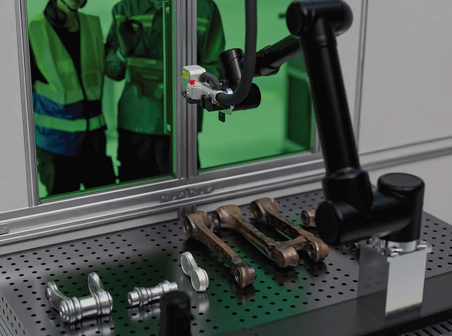 “For extra safety, our custom-tailored automated laser systems are enclosed in a Class I safety work cell. We can also integrate dust and residue collection, as well as a fume extractor that captures vapors during the cleaning of toxic substances,” says Tupuola.