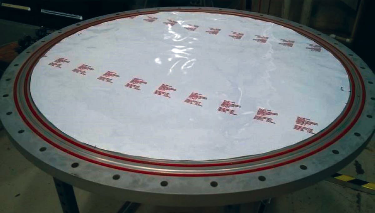 The bladder is made from a polymer material and is surrounded by protective layers to ensure it is not damaged and does not leak. On every module, there are two areas where the bladder and other flexible layers interface with the ends of a cylindrical core, at the bulkheads. Seals between the non-metallic bladder and the metallic bulkhead are critical in maintaining a safe pressurized environment for astronauts to live and work.