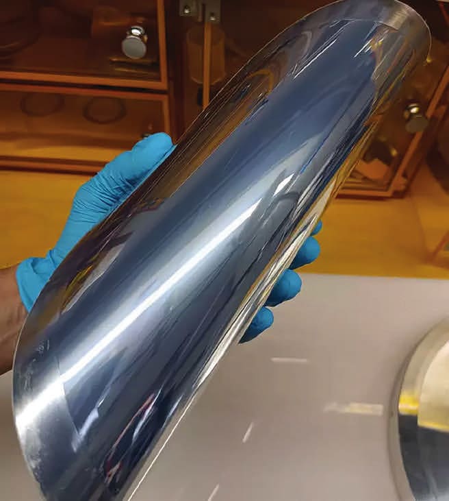 Developed during the COVID-19 pandemic, the new technique works thusly: Mirrors are grown by chemical vapor deposition on a rotating liquid inside a vacuum chamber. While this work demonstrated the feasibility of the method, with the successful fabrication of parabolic membrane mirror prototypes up to 30 cm in diameter, “it lays the groundwork for larger packable mirror systems that are less expensive than usual,” added Rabien.