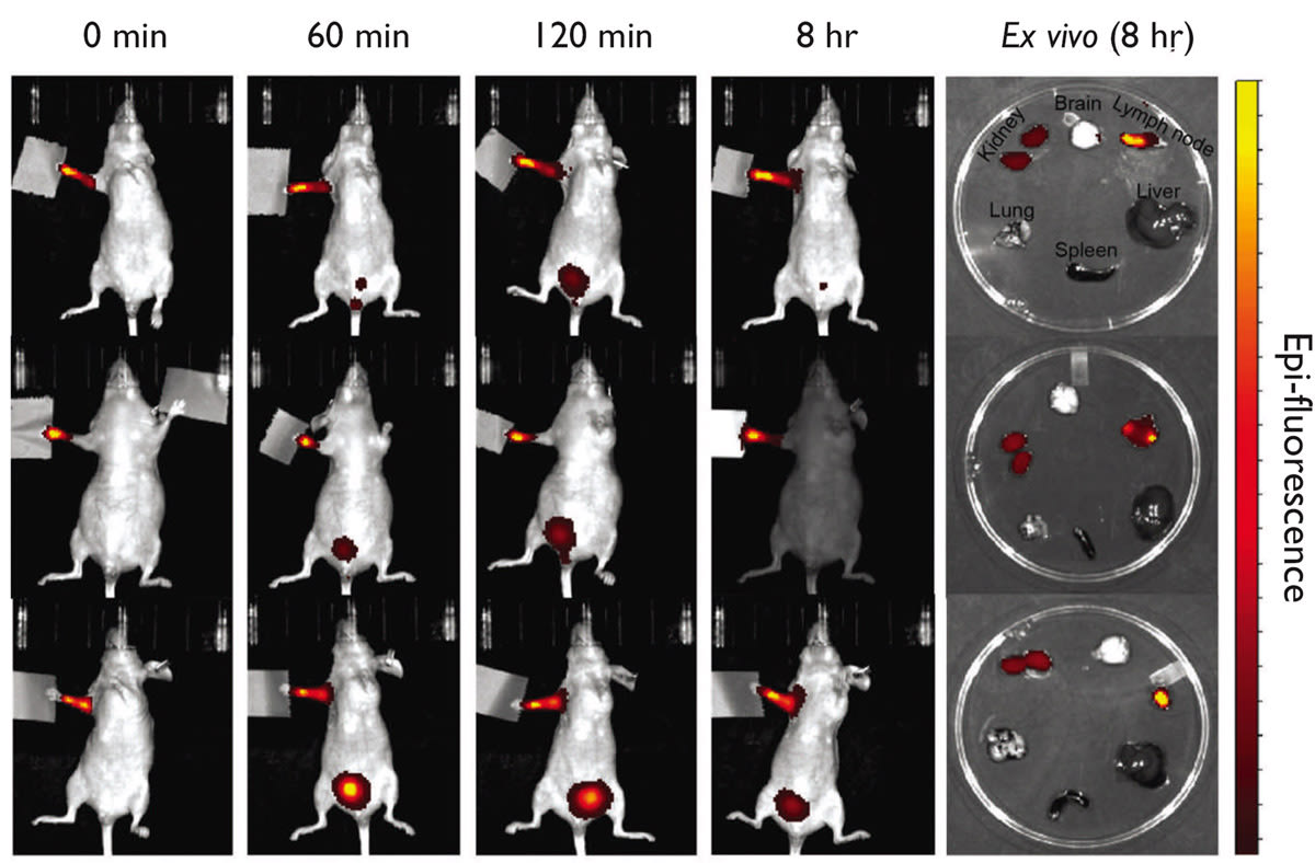 Electron microscopy images of lymphatic tissue reveal that large cohorts of the nanostructures cluster inside cells that serve a critical role in the activation of the innate immune response, suggesting their potential use in immunotherapies, cancer prophylaxis and early diagnosis and infectious disease treatment. The work is detailed in the journal Advanced Materials.