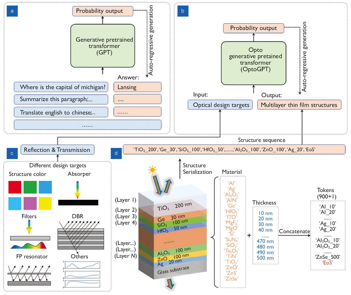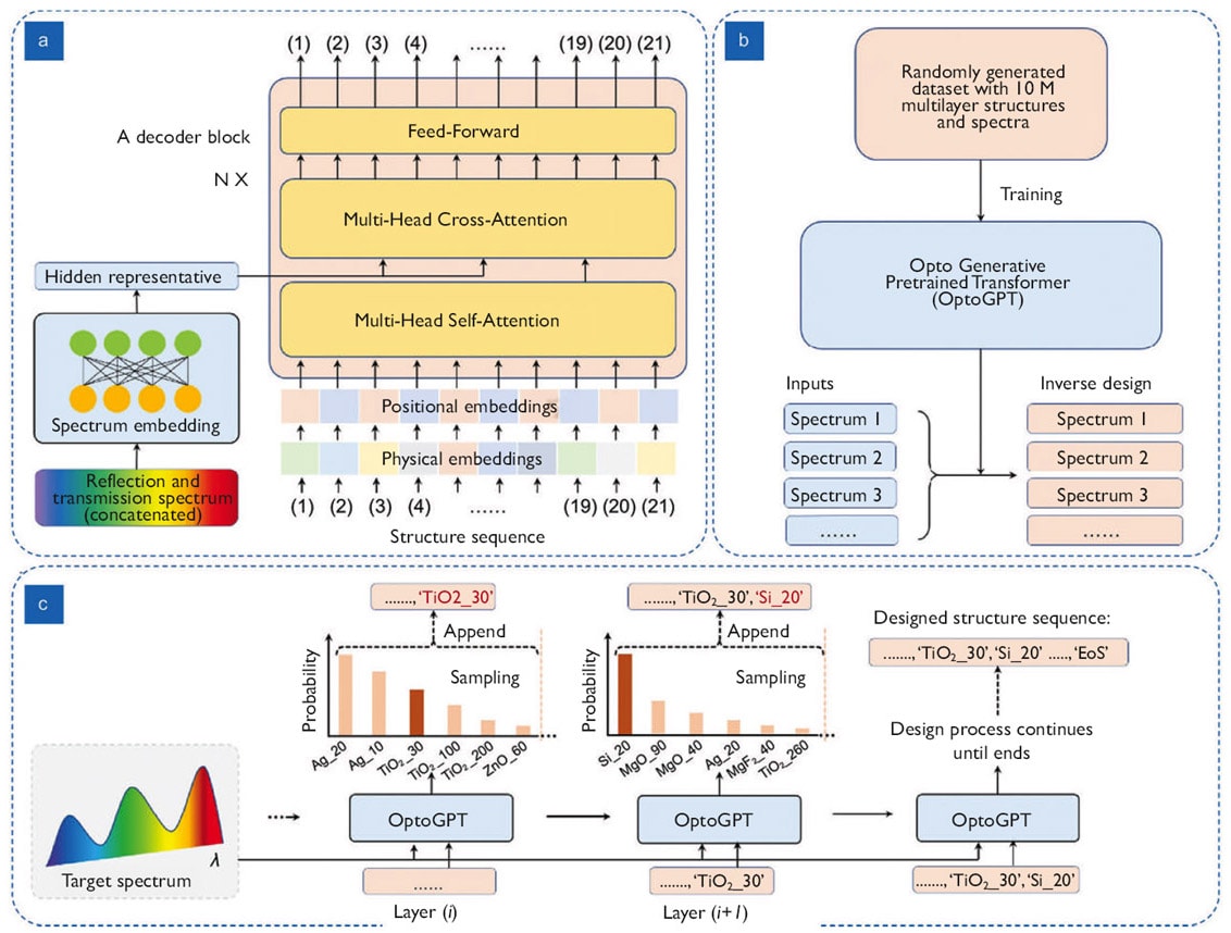 Opto Generative Pretrained Transformer (OptoGPT), a decoder-only transformer, developed by University of Michigan (U-M) engineers, harnesses the computer architecture underpinning ChatGPT to work backward from desired optical properties to the material structure that can provide them.