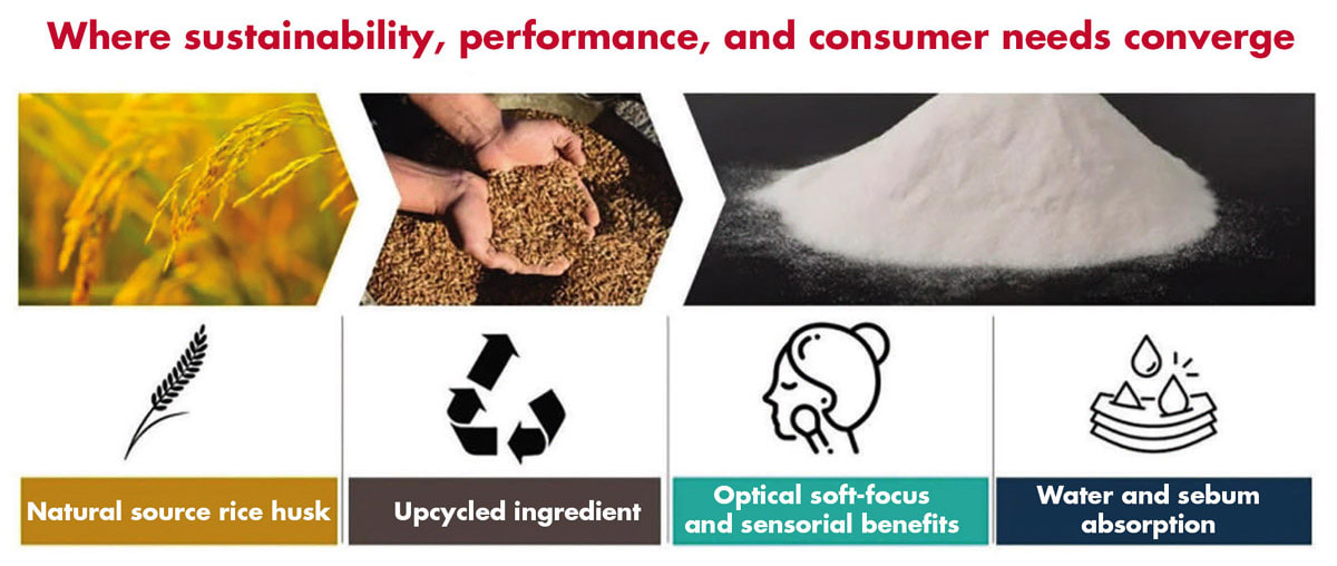 “Several silica materials derived from rice husk, with varying particle sizes and surface areas, were analyzed to identify the most promising candidate. This analysis was guided by a fundamental understanding of the material structure-property relationship in skin care formulations, aiming for optical benefits and skin-blurring effects,” said Vincent.