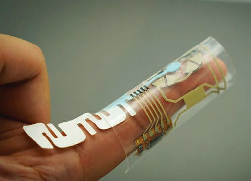 A sweat-powered wearable has the potential to make continuous, personalized health monitoring as effortless as wearing a Band-Aid. Engineers at the University of California San Diego have developed an electronic finger wrap that monitors vital chemical levels — such as glucose, vitamins, and even drugs — present in the same fingertip sweat from which it derives its energy. The device is constructed from several electronic components printed onto a thin, flexible and stretchable polymer material. Its design allows it to conform to the finger while being durable enough to withstand repeated bending, stretching and movement. Central to its operation are biofuel cells that are positioned where the device contacts the fingertip. These cells have been specially engineered to efficiently collect and convert chemicals in sweat into electricity. The team’s goal is to have autonomous power, sensing, and treatment all in one device.