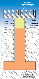 A study of factors that could affect the design and operation of the device has been performed. These factors include the thermal conductances of the soil, the components of the device, the contacts between the components of the device, and the interfaces between the heat exchangers and their environments. The study included experiments that were performed on a model of the device to demonstrate feasibility. Because a TEMG suitable for this device was not available, a brass dummy component having a known thermal conductance of 1.68 W/K was substituted for the TEMG in the models to enable measurement of heat flows. The model included a water-based heat pipe 30 in. (76.2 cm) long and 1 in. (2.54 cm) in diameter, wrapped with polyethylene insulation to reduce radial heat flow. Several different side heat exchangers were tested. On the basis of the measurements, it was predicted that if a prototype of the device were equipped with a TEMG, daily temperature fluctuations would cause its output power to fluctuate between 0 and about 0.1 mW, peaking to 0.35 mW during early afternoon.