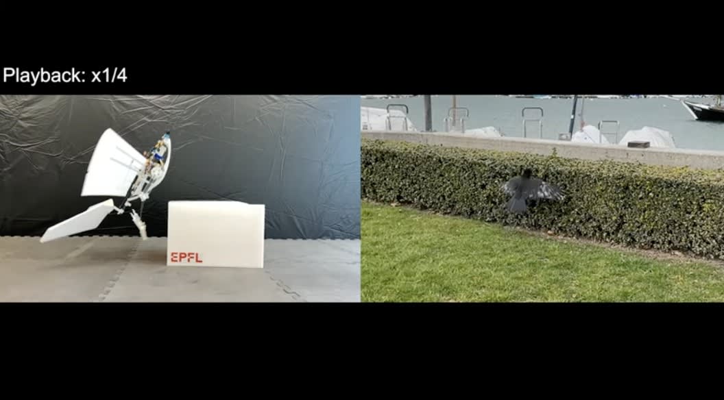 “As the crow flies” is a common idiom referring to the shortest distance between two points, but the Laboratory of Intelligent Systems, led by Dario Floreano, in EPFL’s School of Engineering has taken the phrase literally with RAVEN (Robotic Avian-inspired Vehicle for multiple ENvironments). Designed based on perching birds like ravens and crows that frequently switch between air and land, the multifunctional robotic legs allow it to take off autonomously in environments previously inaccessible to winged drones.
