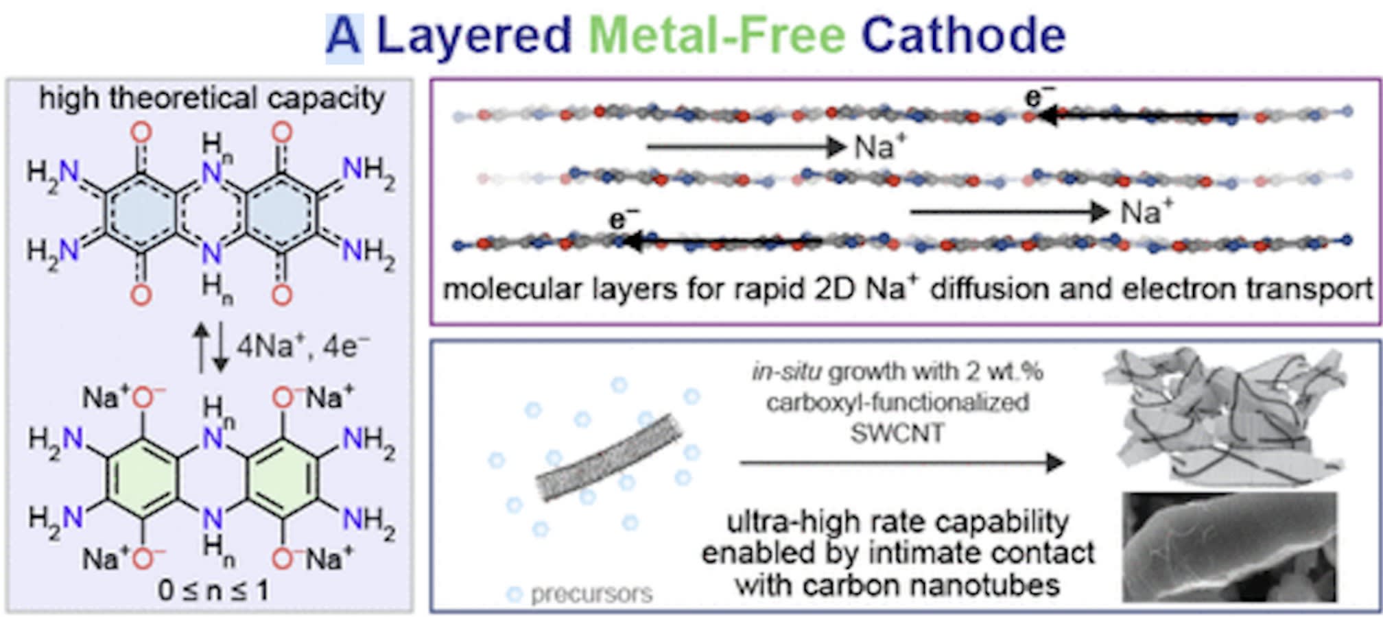 The lab underscored the advantages of TAQ a year ago when they first reported on its utility for making lithium-ion batteries in ACS Central Science. Researchers simply continued investigating its potential, particularly when they found TAQ to be completely insoluble and highly conductive, two key technical advantages for an organic cathode material. A cathode is an essential component of all polarized devices.